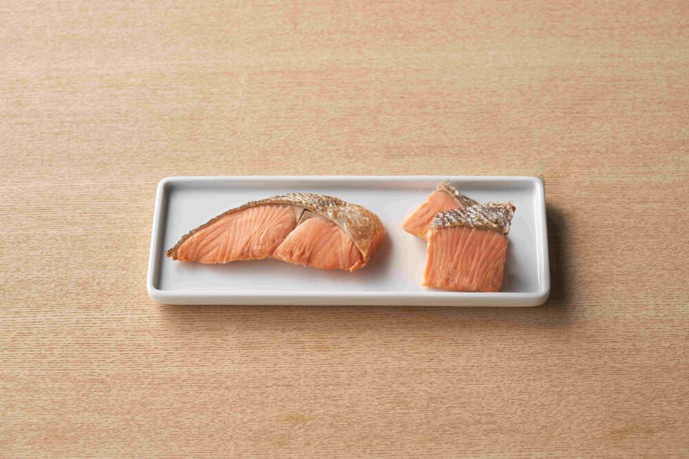 表面は香ばしく、中はしっとりとした食感で、口に入れた瞬間に鮭の旨味と漬けダレの深い味わいが広がる逸品です。